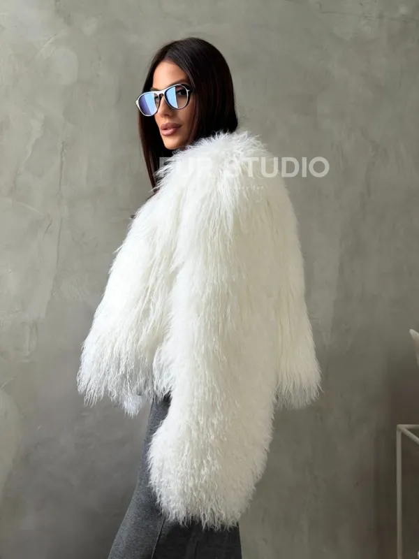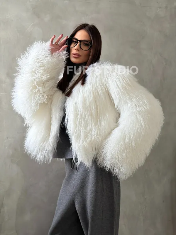 Белая кроп-шуба из меха ламы доступна для покупки в нашем шоуруме Furs Studio в . У нас так же есть доставка во все города России. Добавьте немного роскоши в свой гардероб с этой шубой, которая будет служить вам многие годы.