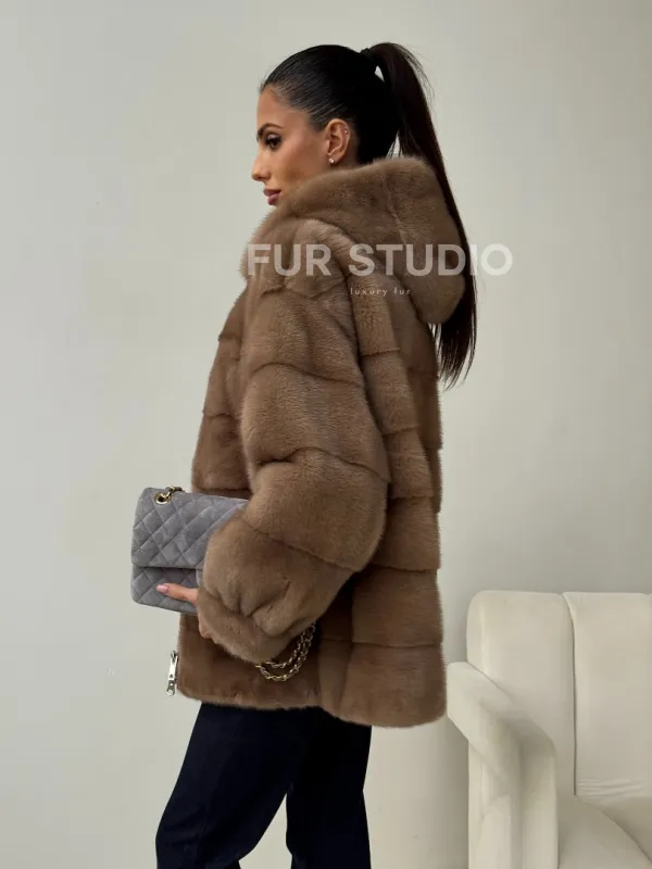 Бежевая норковая куртка с капюшоном доступна для покупки в нашем магазине Furs Studio в , с возможностью доставки в любой город России. Добавьте немного стиля и элегантности в свой гардероб с этой курткой, которая будет вам служить многие годы, подчеркивая ваш неповторимый стиль.