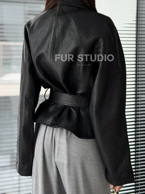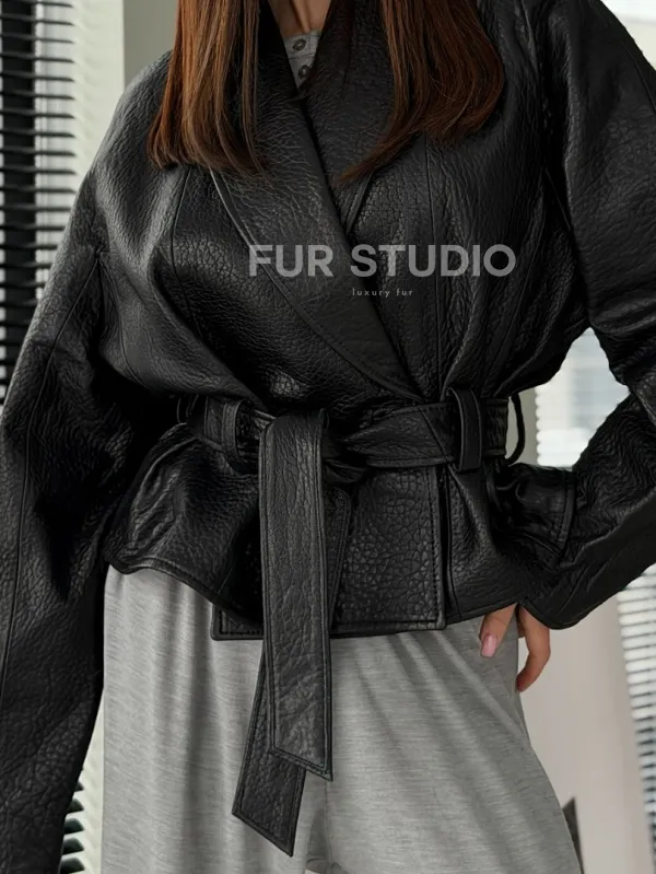 Черная куртка из натуральной кожи доступна для покупки в нашем шоуруме Furs Studio в , где также предоставляется удобная доставка во все города России.