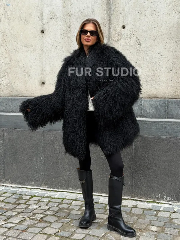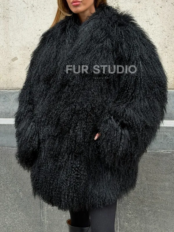 Черная шуба из ламы V-образный вырез доступна для покупки в нашем шоуруме Furs Studio в . У нас так же есть доставка во все города России. Добавьте немного роскоши в свой гардероб с этой шубой, которая будет служить вам многие годы.