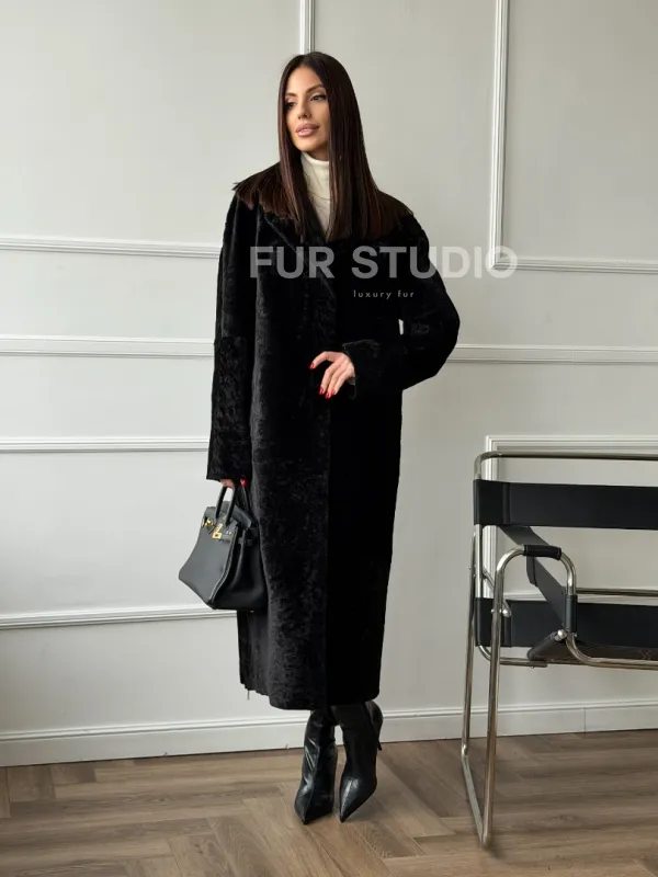 Дубленка из натуральной овчины астраган. Модель предлагается в размерах от 42 до 48. Оптимальная длина моделей 115-120 см подчеркивает линии вашей фигуры. Эта дубленка станет неотъемлемой частью гардероба для тех, кто предпочитает роскошь и утонченность натуральной кожи.