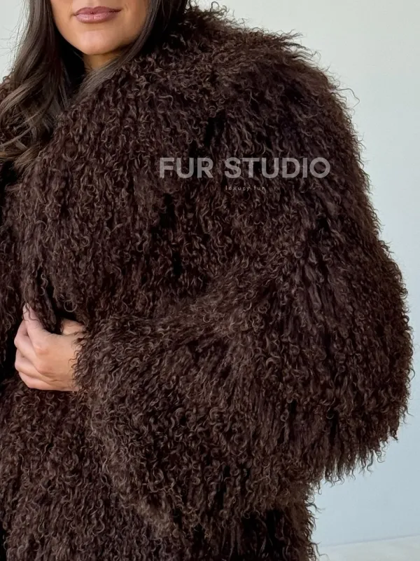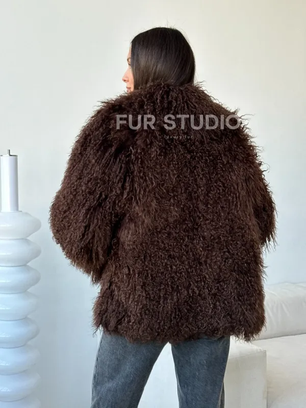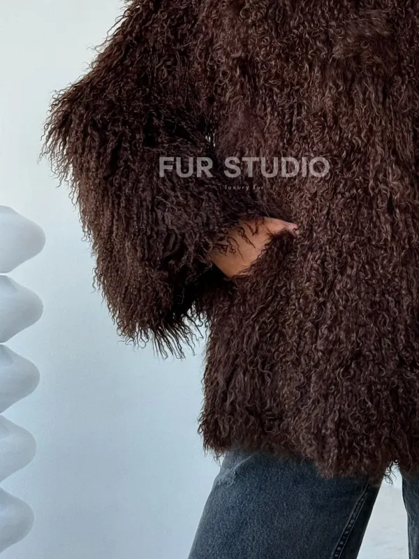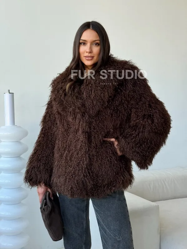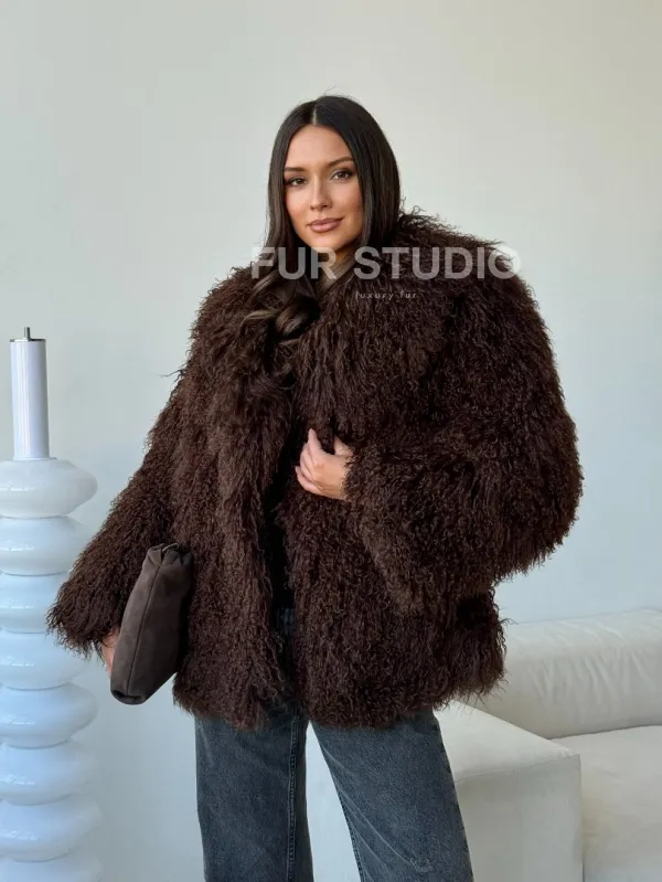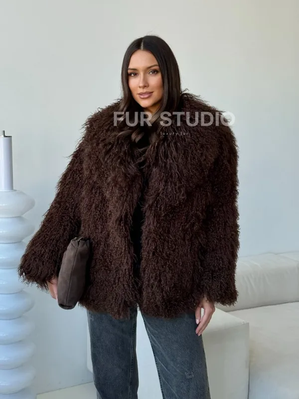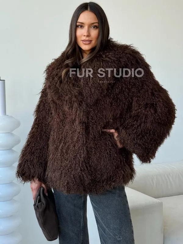 Коричневая шуба из ламы 102517