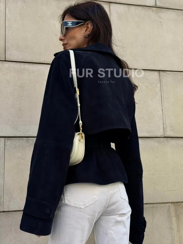 Модная куртка из замшевой кожи доступна для покупки в нашем шоуруме Furs Studio в , где также предоставляется удобная доставка во все города России.