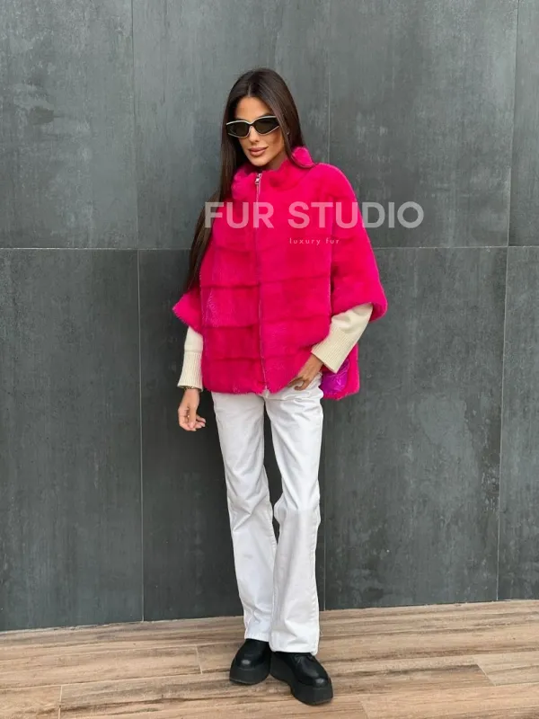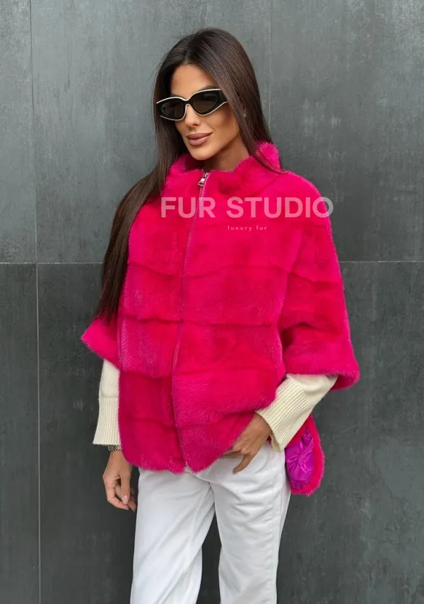 Мех данной шубы аукционная норка , цвет розовый. Предлагается в размерах от 40 до 48 (oversize). Длина модели 60-65 см, что выгодно подчеркивает фигуру девушек. Эта модель идеально подойдет для девушек и женщин, предпочитающих роскошные натуральные меха.