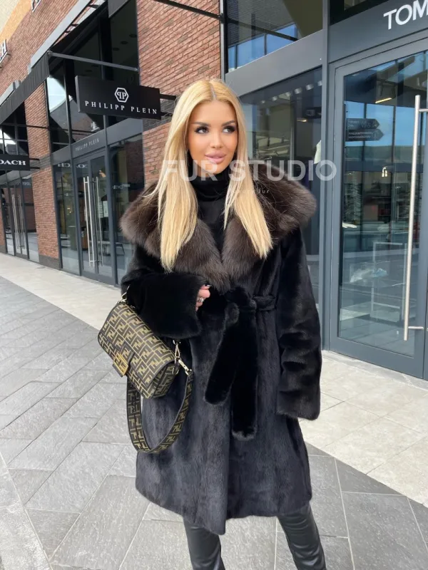 Норковая шуба с капюшоном из меха куницы – модель, которая никогда не выйдет из моды. Норка всегда указывает на особый статус владелицы, о ней мечтают все представительницы прекрасного пола. Нежный мех бережно позаботится о комфортной температуре, даже если на улице сильные морозы. Шикарный капюшон из меха куницы сохранит прическу в любую непогоду.