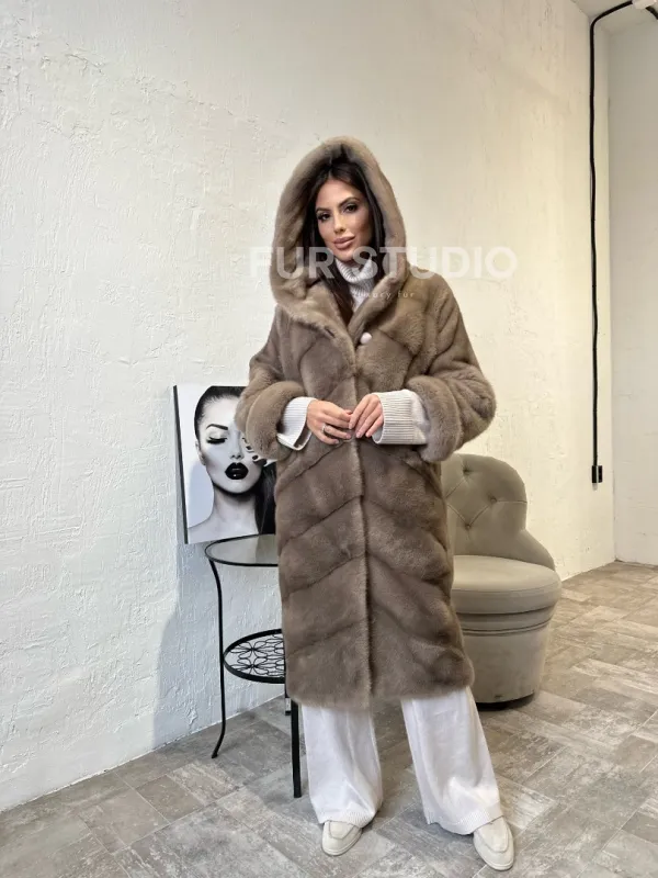 Норковая шуба с капюшоном в цвете пастель доступна для покупки в нашем шоуруме Furs Studio в . У нас так же есть доставка во все города России. Добавьте немного роскоши в свой гардероб с этой шубой, которая будет служить вам многие годы.