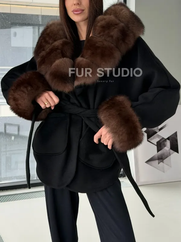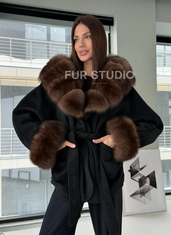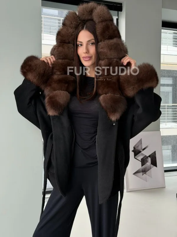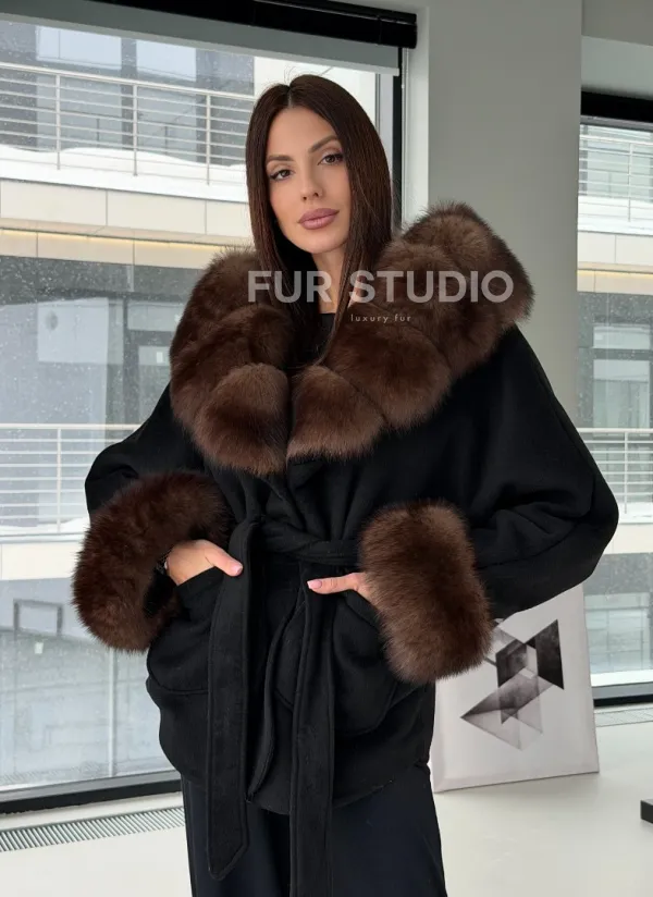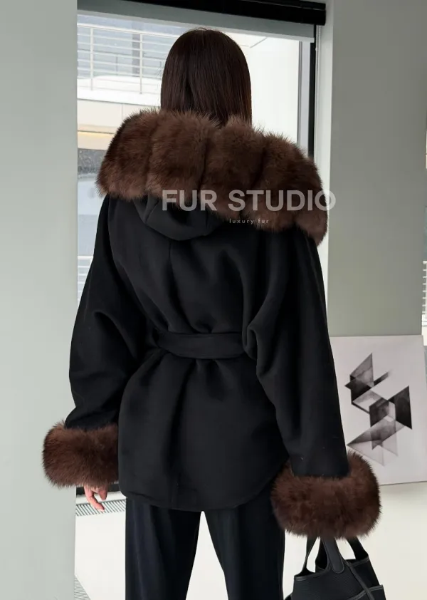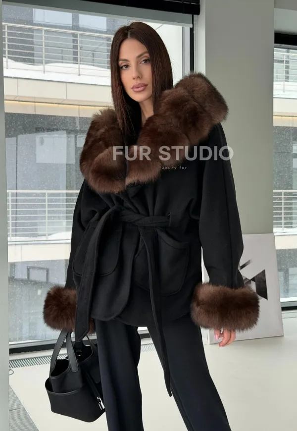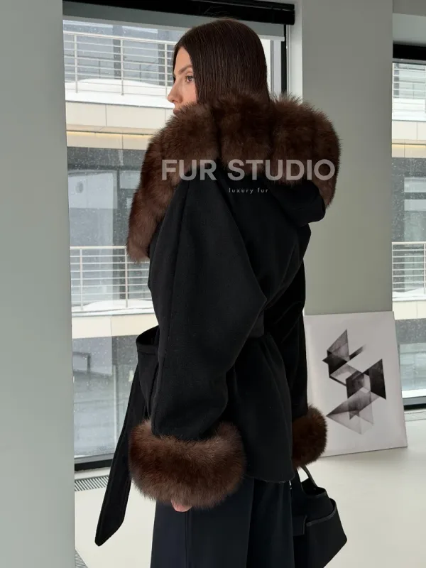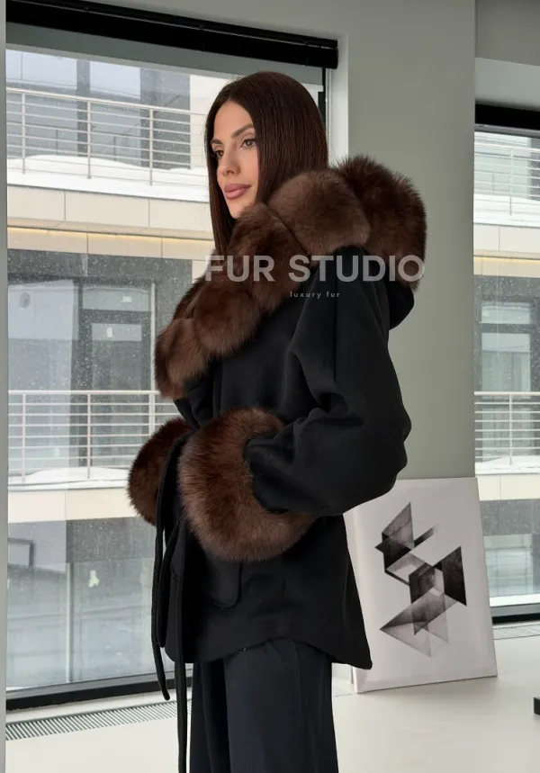 Пальто с капюшоном из финского песца 102906