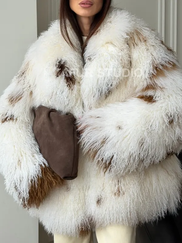 Шуба из ламы бело-коричневая 102550