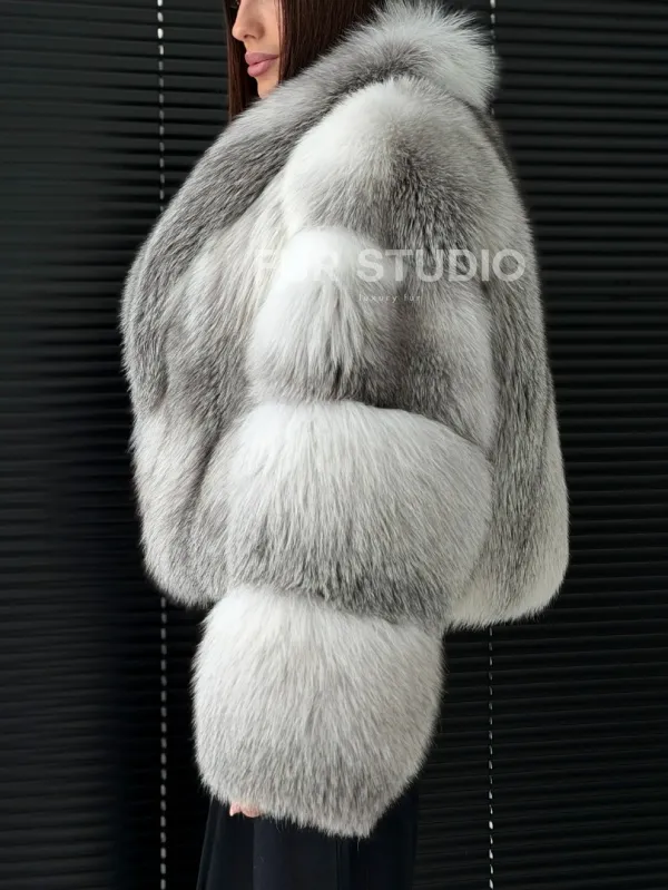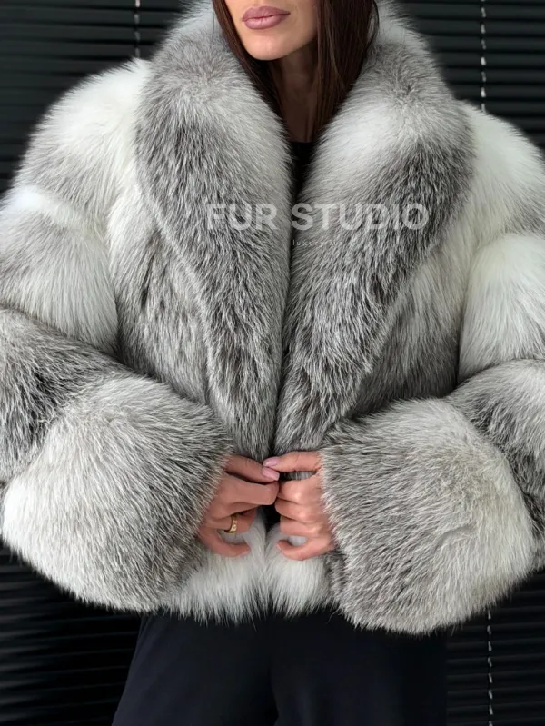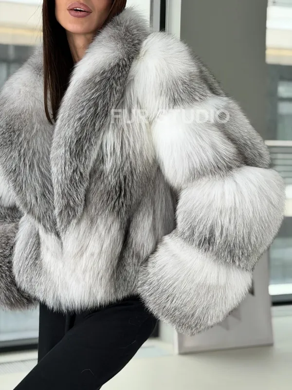 Мех данной шубы лиса, цвет белый. Предлагается в размерах от 42 до 50. Длина модели 55-60 см, что выгодно подчеркивает фигуру девушек. Эта модель идеально подойдет для девушек и женщин, предпочитающих роскошные натуральные меха.