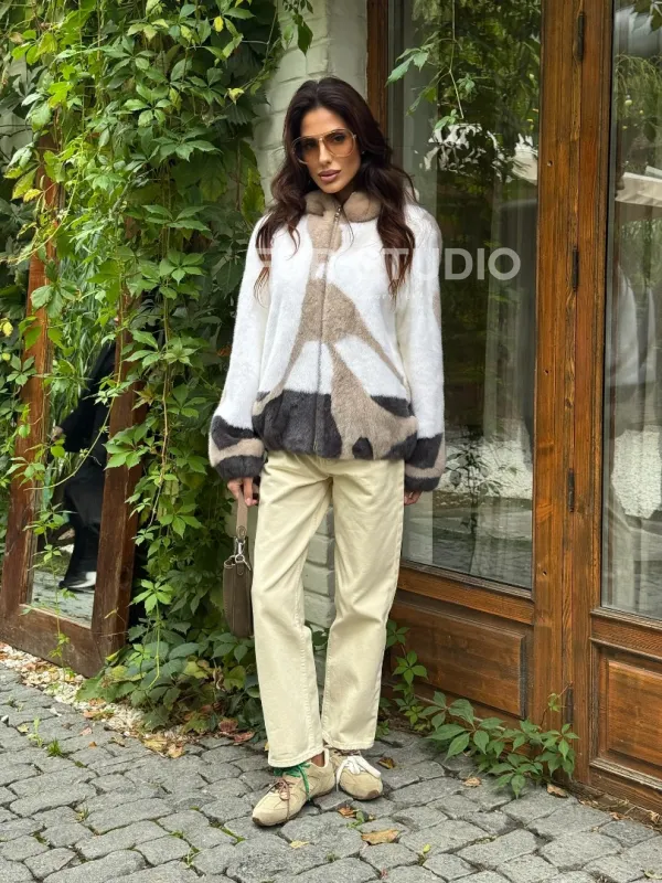 Материал выбранной модели — аукционная норка, доступна в цвете белый. Куртка предлагается в разнообразии размеров, от S до XL, а ее длина составляет 60-65 см, что выигрышно подчеркивает вашу фигуру. Этот вариант идеально подходит для тех, кто ценит роскошь и утонченность натуральных материалов.